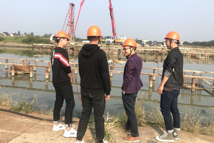 大东吴集团提供的实习项目具有丰富的桥梁结构形式,展示了市政工程道路、桥梁、管道的全貌,为市政专业的实习学生提供了天然的学习素材和实训环境。学院指导老师结合项目施工为实习学生作了现场教学。