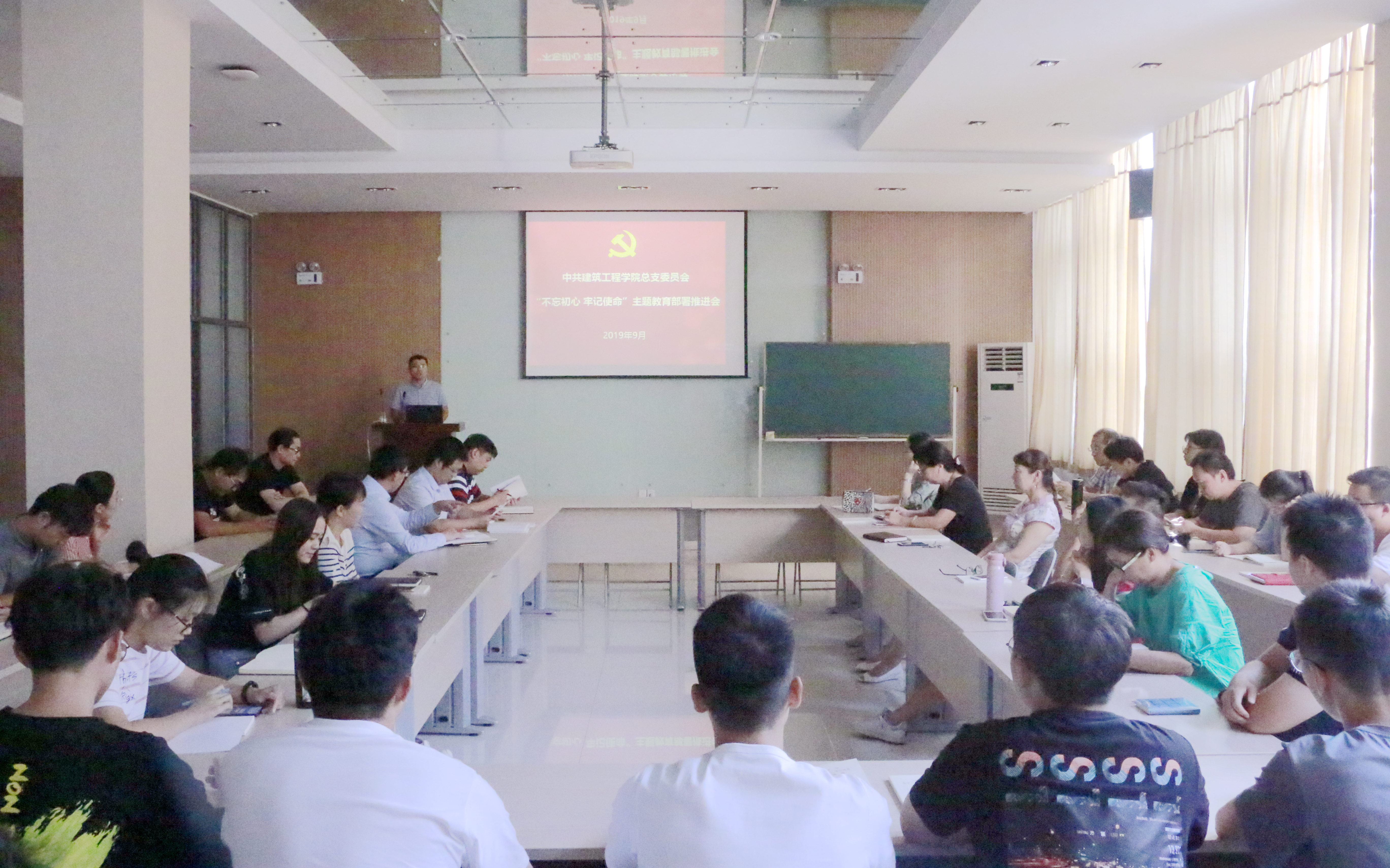 9月17日下午,建筑工程学院召开了“不忘初心、牢记使命”主题教育工作部署推进会,传达学习了省委主题教育第五巡回指导组组长陶时梅讲话精神,以及校党委书记、学校主题教育领导小组组长周家健的动员部署讲话精神,重点部署了学院主题教育日程安排和工作计划。会议由学院党总支书记、学院主题教育领导小组组长刘青春主持,学院全体师生党员参加了会议。