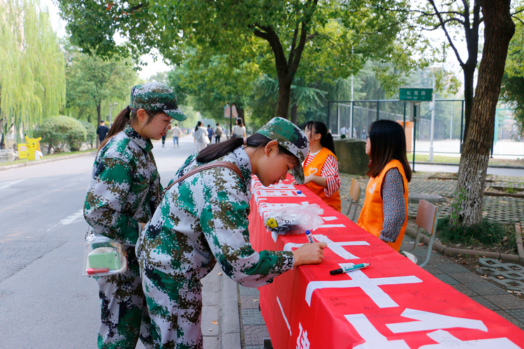 中午下课后,来往的同学们纷纷拿起马克笔在印有“青春告白祖国,献礼七十华诞”的横幅上签下自己的姓名,表达自己对祖国的祝福和热爱,感谢祖国给予我们的幸福生活。在活动场地签名的建管1701班王哲鹏同学说到:“作为新时代的青年,我们应当把个人梦想融入伟大的‘中国梦’。‘与国同梦’必将让我们的目标更清晰,步履更坚定,在报效祖国的同时实现个人价值,成就人生辉煌!”