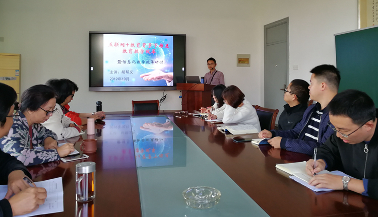 分享会上,胡帮义结合自己的教学实践研究,阐述了对“互联网+”教育教学的理解和思考,分享了实践教学中的收获与体会。