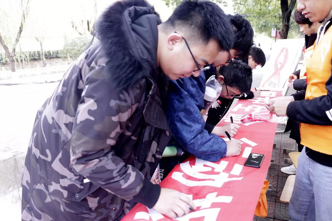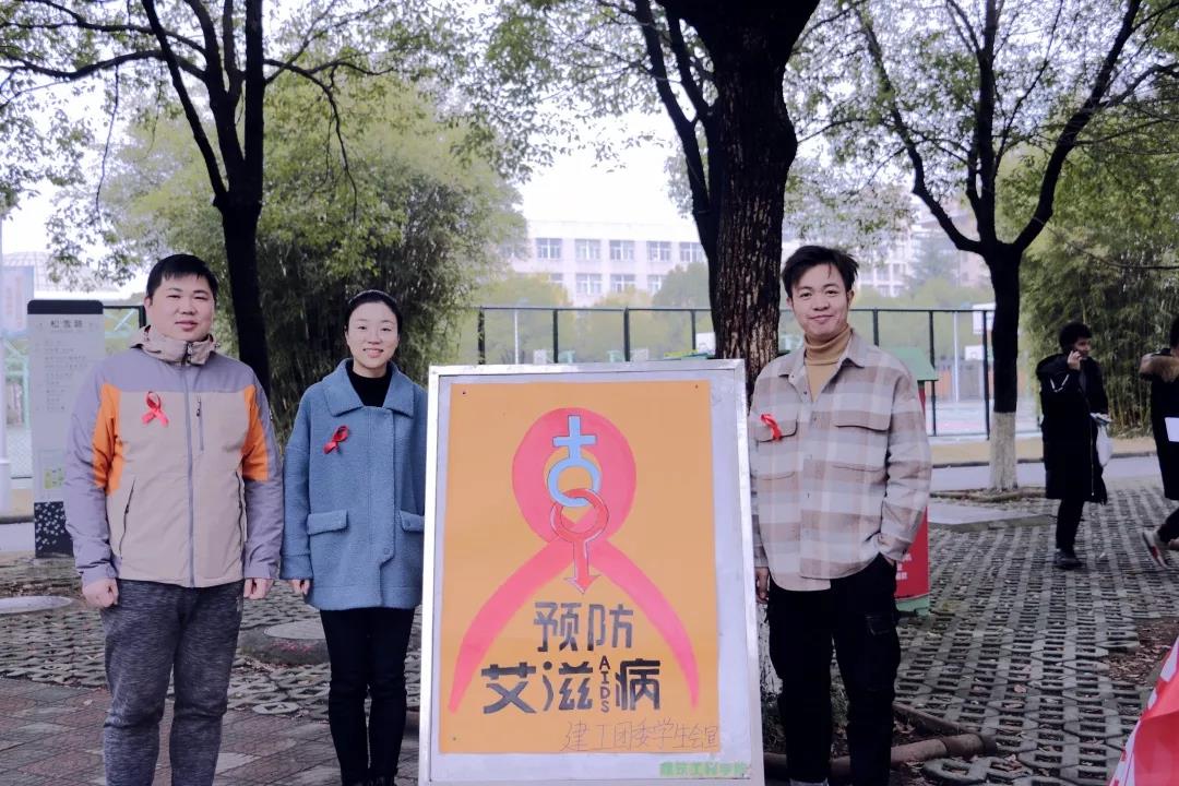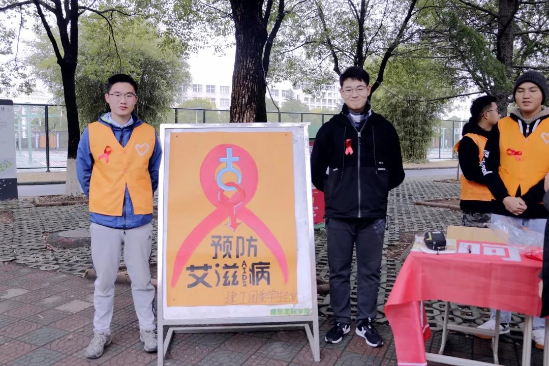近日中午,建工学院爱心基金会全体成员在一号食堂门口举办“防‘艾’不妨‘爱’”活动。