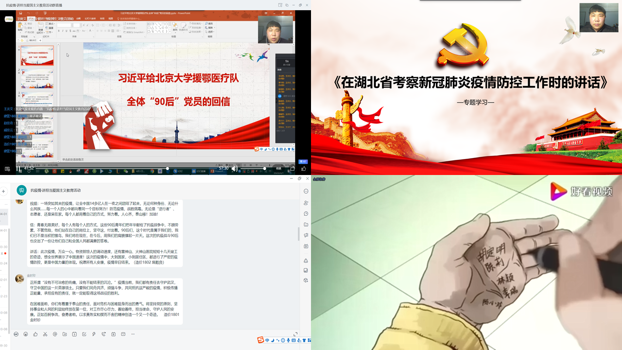 本次教育活动旨在贯彻落实习近平总书记关于疫情的各项指示精神以及《新时代爱国主义教育实施纲要》文件精神,提升学院青年的疫情防控意识和责任意识。会上,学院辅导员领学了《习近平给北京大学援鄂医疗队全体"90后"党员的回信》以及《习近平在湖北省考察新冠肺炎疫情防控工作时的讲话》,他鼓励每位建工青年们都要认真学、认真读,领会总书记的深意,将青年之责任、青年之担当落到实处,正如“回信”中所提及的,“让青春在党和人民最需要的地方绽放绚丽之花”。