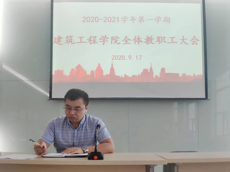 为进一步提升学院教育教学管理水平,加强师德师风建设,积极贯彻落实全国教育大会精神,9月17日下午建筑工程学院召开全体教职工大会,学院党总支负责人主持会议,全体教职工参加学习会。