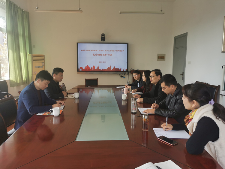 学院党总支书记刘青春对企业方一行表示热烈欢迎,并就近年来学院校企合作工作情况及成效作了简要介绍。武汉正远岩土科技有限公司总经理胡勇在发言中分析了当前建筑业发展趋势,尤其对数字基建进行深入阐释和介绍,并期望接下来双方能在此领域有更深入的交流和合作。
