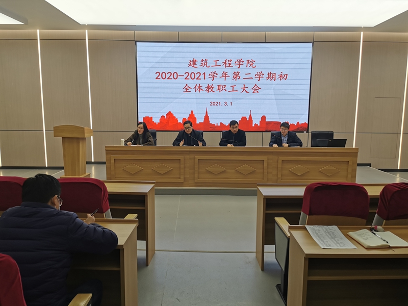 3月1日下午,建筑工程学院在14222多媒体大教室召开新学期全体教职工大会。副校长肖先波出席会议并讲话,学院党总支书记主持会议。