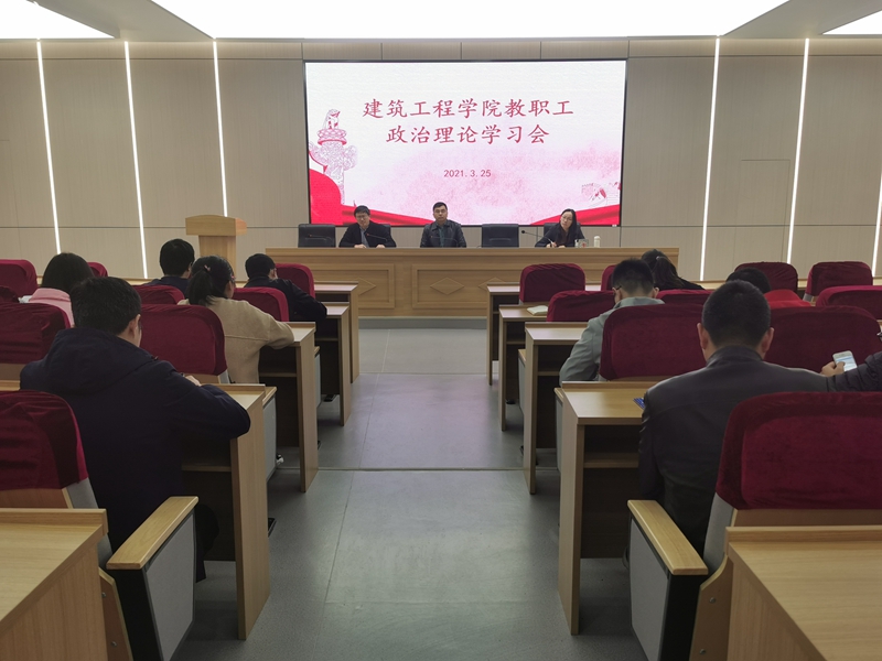 3月25日,建筑工程学院召开全体教职工政治理论学习会。会议传达学习了全国“两会”精神、李克强总理政府工作报告、湖州职业技术学院2021年党政工作要点等内容。学院党总支书记主持学习会并讲话,全体教职工参加了学习会。