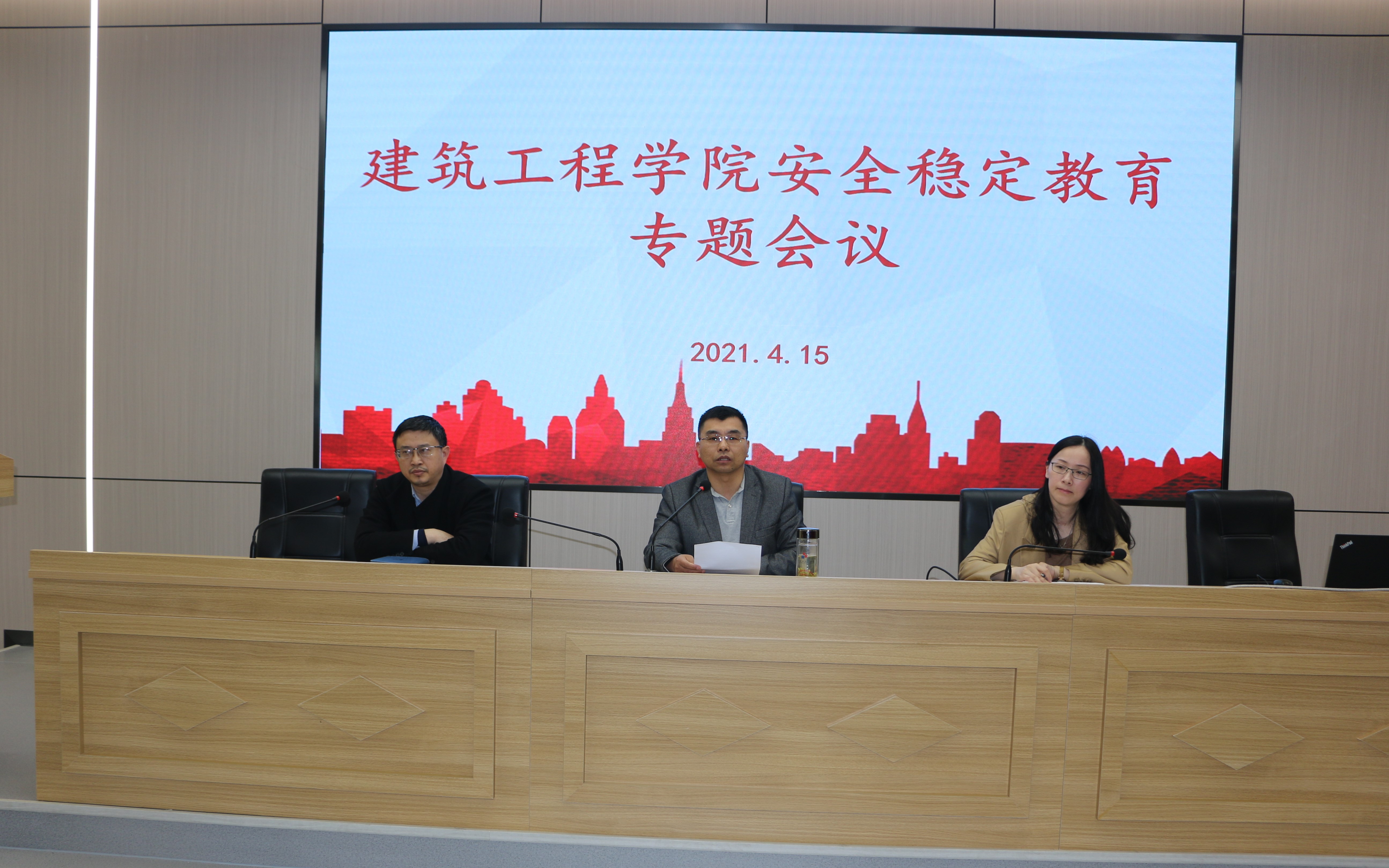安全稳定是事业发展的基础和关键,安全责任重于泰山。4月15日下午,建筑工程学院召开安全稳定工作专题会议,会议由学院党总支负责人主持,全体教职工参加会议。