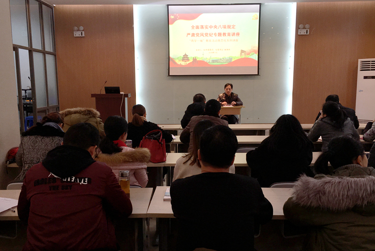 为深入贯彻学习党的十九大精神,全面落实中央“八项规定”,加强党风党纪建设,增强学院党员教师的廉洁自律意识,提高师德师风水平,推动“两学一做”教育常态化开展,1月4日下午,校党委委员、纪委书记吴海燕应邀为建筑工程学院全体党员教师作了全面落实中央八项规定,严肃党风党纪专题教育讲座。学院领导班子成员和全体教工党员参加会议。