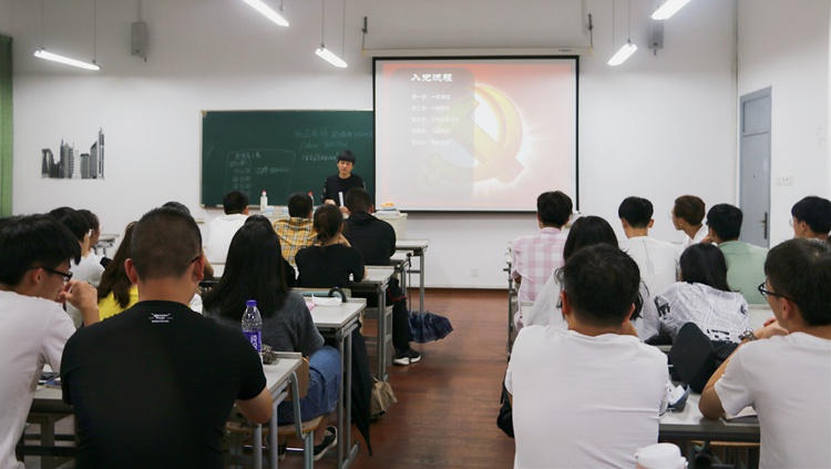 为了让新生正确看待入党问题,端正入党动机,了解入党流程。9月16日起,学院组织各学生党支部利用晚自习进班级对全体新生进行为期2天的入党启蒙教育讲座。讲座介绍了学院近年来学生党员发展工作的情况,中国共产党的性质、党员的权利与义务等知识,并阐述了什么是入党动机、如何端正入党动机,希望有入党意愿的同学应尽快适应大学学习和生活,在学习和实践中提高自己的思想政治素养,不断纠正和净化自己的入党动机,树立坚定的政治信仰,不断追求进步,从多方面提升自己。此外,学院还组织新生分批次参观学院的党员样板寝室,树立学习的目标。