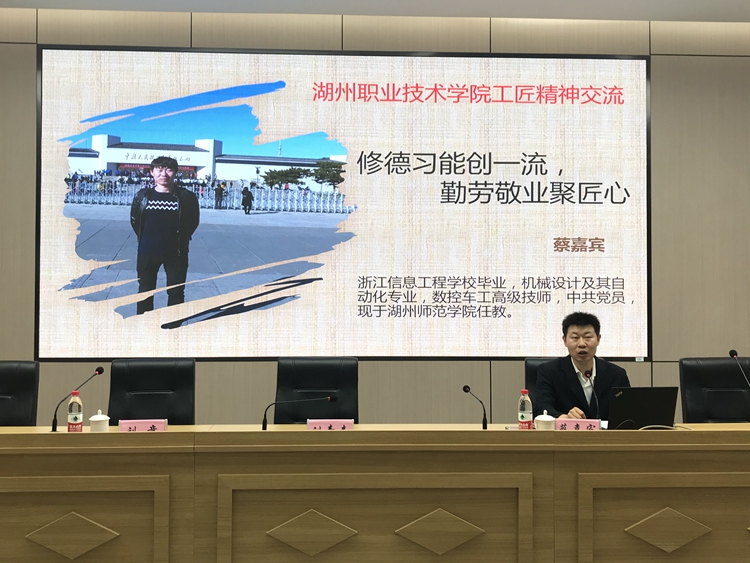 6月3日下午,建筑工程学院联合校工会举办了“劳模进校园”专题报告会。省“五一”劳动奖章获得者、省技术能手、省百千万高技能领军人才、湖州市首席技师、湖州师范学院教师蔡嘉宾来校,以“修德习能创一流,勤劳敬业聚匠心”为主题,分享了他的成长故事,用自己的亲身经历诠释劳模精神和工匠精神。校工会副主席、学院班子成员、全体教职工聆听了劳模事迹报告。