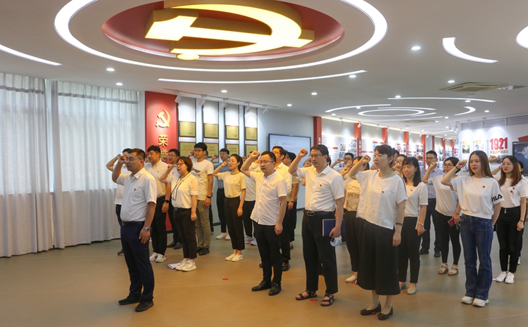 在校党群服务中心,首先学院红色年轮宣讲团成员陈俊博带领全体教师党员进行参观学习,了解校史党史,学习校情党情,凝聚奋进力量。接下来,在学院党总支书记刘青春的带领下,全体教师党员面对鲜红的党旗,全体肃立,高举右拳,庄严地进行了宣誓:“我志愿加入中国共产党,拥护党的纲领,遵守党的章程……”慷慨激昂的宣誓声在党群服务中心久久回荡,每一位党员胸前的党徽熠熠生辉。宣誓结束后,教师党员纷纷表示,要用毕生的追求与行动践行入党誓词,在一言一行的坚守中,擦亮党员身份,树好党员榜样,为学校创先争优作出新的更大贡献。