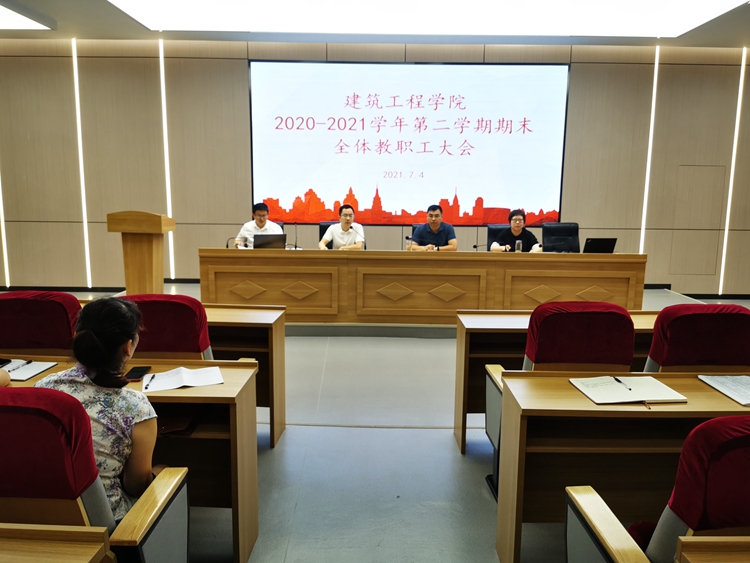 7月4日上午,建筑工程学院在14222多媒体大教室召开期末全体教职工大会。学院行政负责人主持会议,全体教职工参加会议。