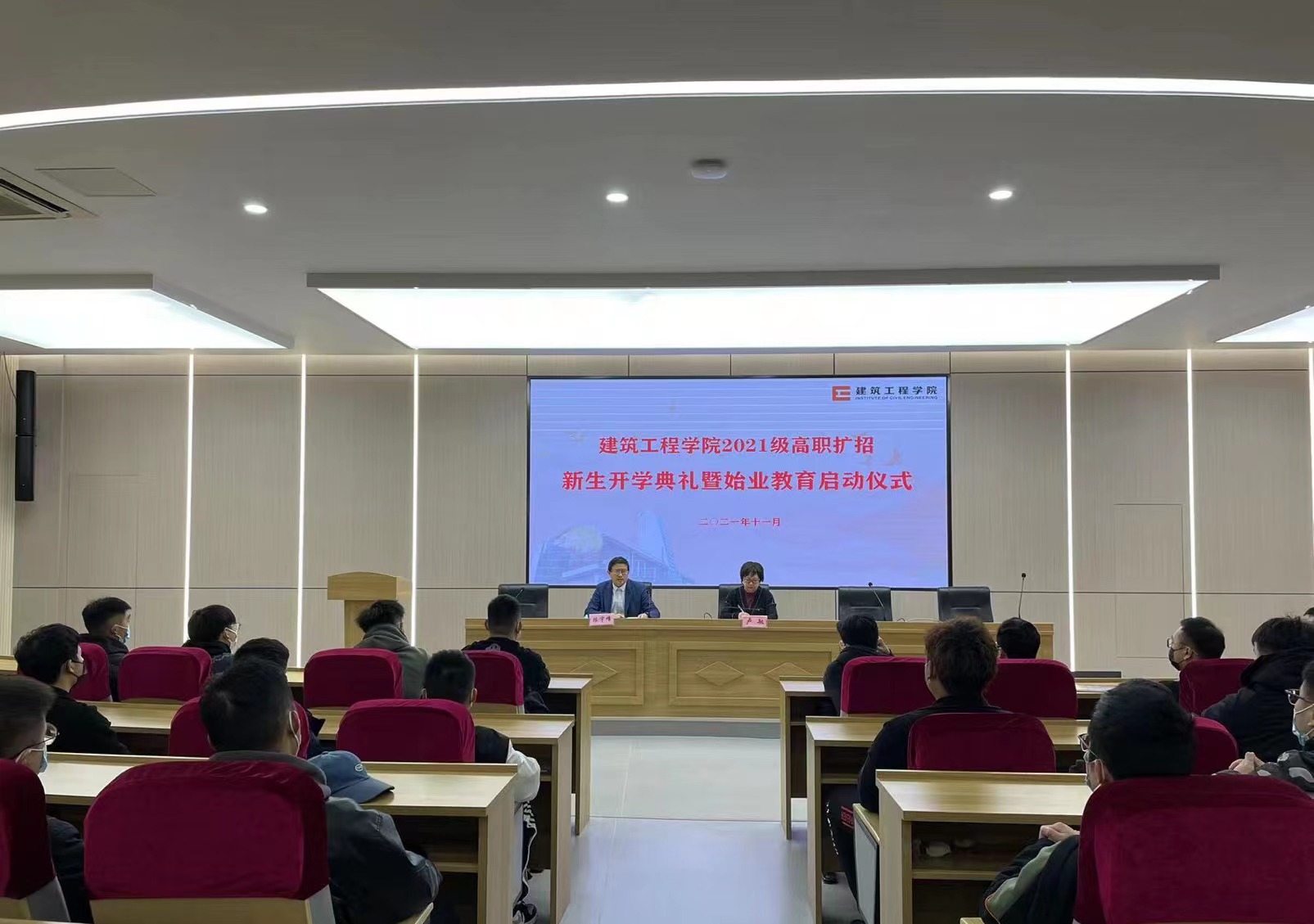 11月13日,湖州职业技术学院建筑工程学院2021级高职扩招新生开学典礼在14222举行。学院党总支和教学相关负责人、教师代表、全体2021级高职扩招新生参加了开学典礼。