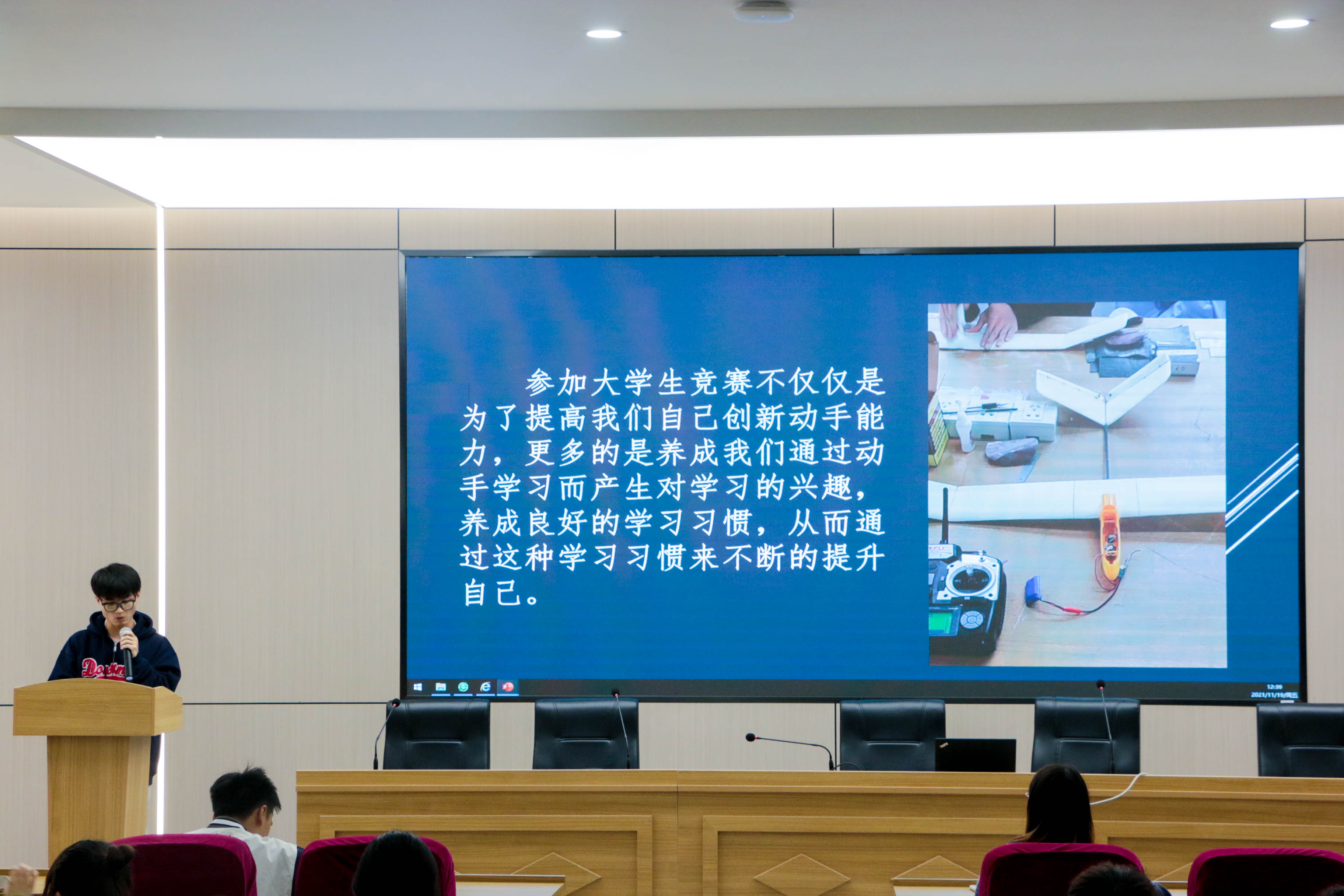 学院建筑结构创新工作室负责人黄昆老师以《工匠精神——技能竞赛篇》为题,详实地介绍了各类建筑专业技能竞赛,并系统介绍了全国大学生结构设计竞赛,以切身指导参赛的经历生动地向同学们展示了近八年来学院在专业技能竞赛方面取得的丰硕成果。同学们纷纷表示,这场宣讲让他们心潮澎湃,历年竞赛的优异成绩背后是学长学姐们和老师们精益求精、追求卓越的专注和投入,这激励着他们锚定方向,不断前行。