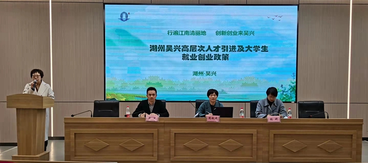 湖州市吴兴区人力资源与社会保障局相关负责人围绕《新时代人才强市战略服务湖州高质量赶超发展意见实施细则(试行)》,从人才引进政策、人才培育、相关服务保障等方面进行介绍,详细解读了湖州市政府在吸引和激励更多优秀的人才集聚湖州、创业湖州、服务湖州等方面提供的优良政策环境和高效便捷的服务保障。他针对高校毕业生在湖实习实训期间的生活补贴、就业补贴、安家补贴、购 (租)房补贴、初次创业补贴、创业示范补贴等重点政策进行了现场解读和答疑,同时就大家普遍关注的人才引进落户、补贴申领、申请领条件等问题进行了现场答疑。吴兴区医疗保障局相关负责人就在校大学生医疗保障、毕业生毕业后参保注意事项等进行针对性的介绍和讲解。