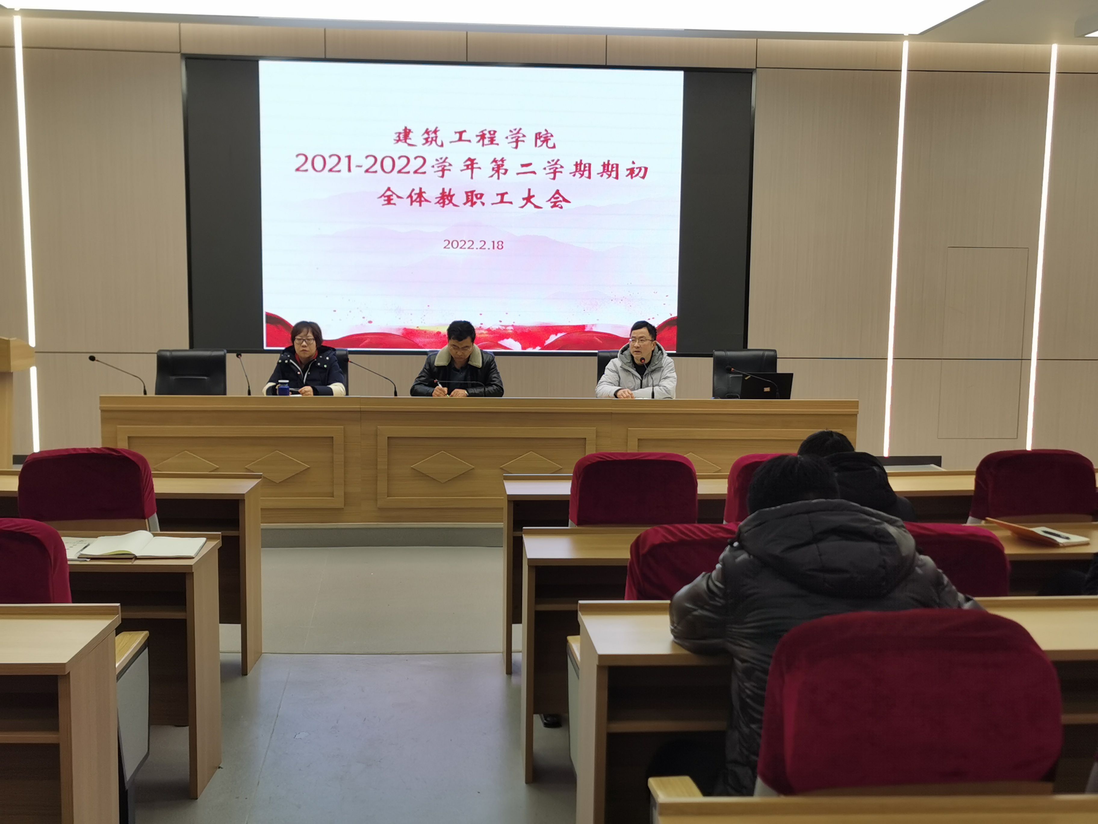 2月18日下午,建筑工程学院在14222多媒体大教室召开新学期全体教职工大会暨政治理论学习会。学院党总支书记主持会议,全体教职工参加了会议。