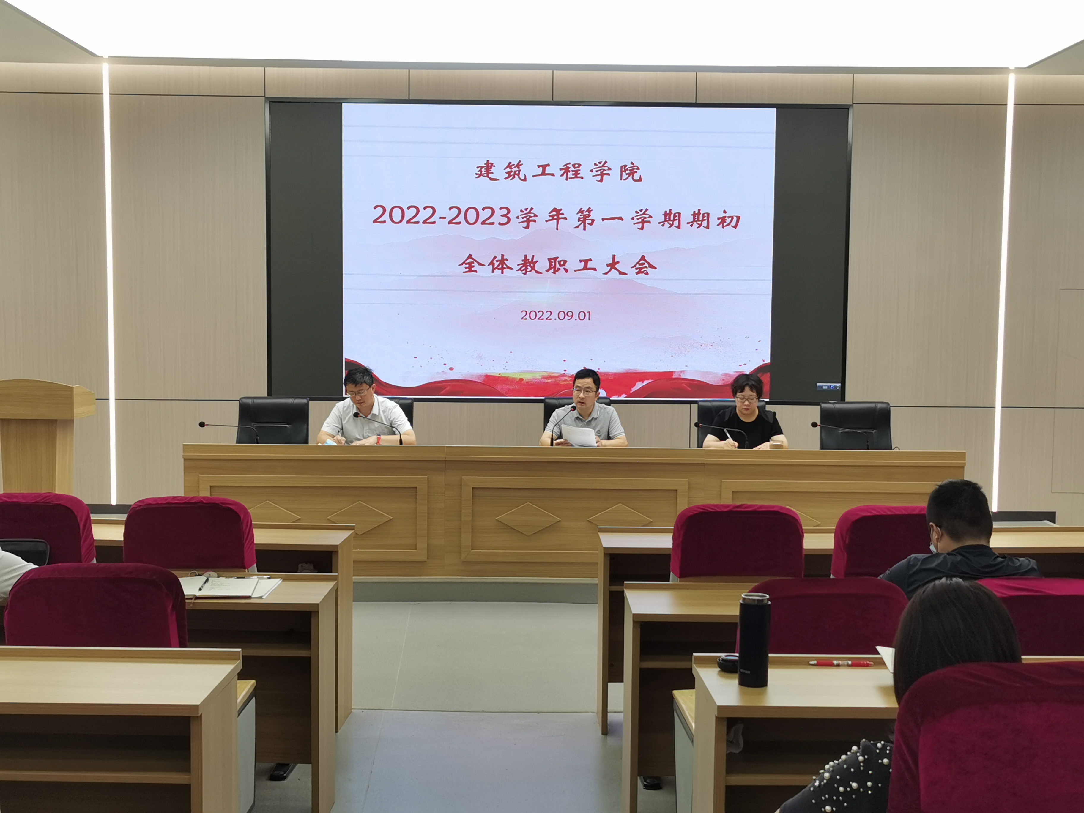 9月1日上午,建筑工程学院在14222多媒体大教室召开新学期全体教职工大会。学院负责人主持会议。