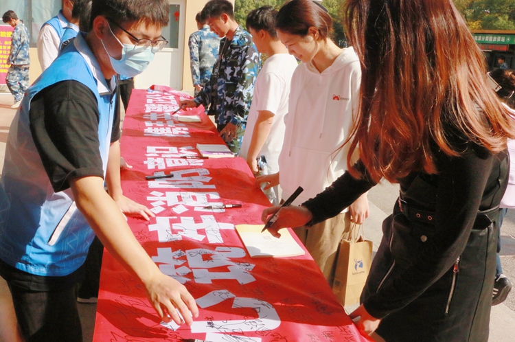 学生干部进寝室、在公寓楼下为大家讲解公寓违章电器的使用危害及使用大功率电器对公寓安全产生的影响,对学院学生进行了相关消防知识、器材的强化科普、警示教育和提示宣传。活动得到了同学的踊跃支持,都认真地在长卷横幅上签下了自己的名字,同学们签下的不仅仅是自已的名字,更是对消防安全的高度认识。