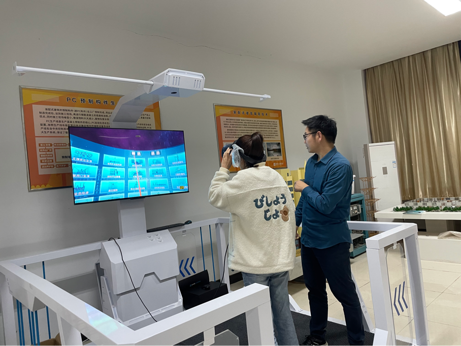 市政工程技术专业教研室主任通过VR带领同学们沉浸式体验了工地安全事故,如支撑梁处坠落、预留洞口坠落、吊篮作业危险源,指出进入工地现场佩戴安全帽、 不乱拉电线的重要性,并要求凡参加实习的学生应要严格遵守实习纪律及实习单位的保卫、安全操作规程、保密制度等要点;最后,他强调实习期间务必注意自身的 人身和财物安全,提高安全防范意识,提高自我防护能力,防止各种事故的发生,严格贯彻“预防为主,安全第一”的思想。本次实习安全主题教育旨在通过学生模 拟体会加理论教育相结合的方式,学生通过模拟感受了一次安全事故的危险,加深自觉培养安全意识的意识。