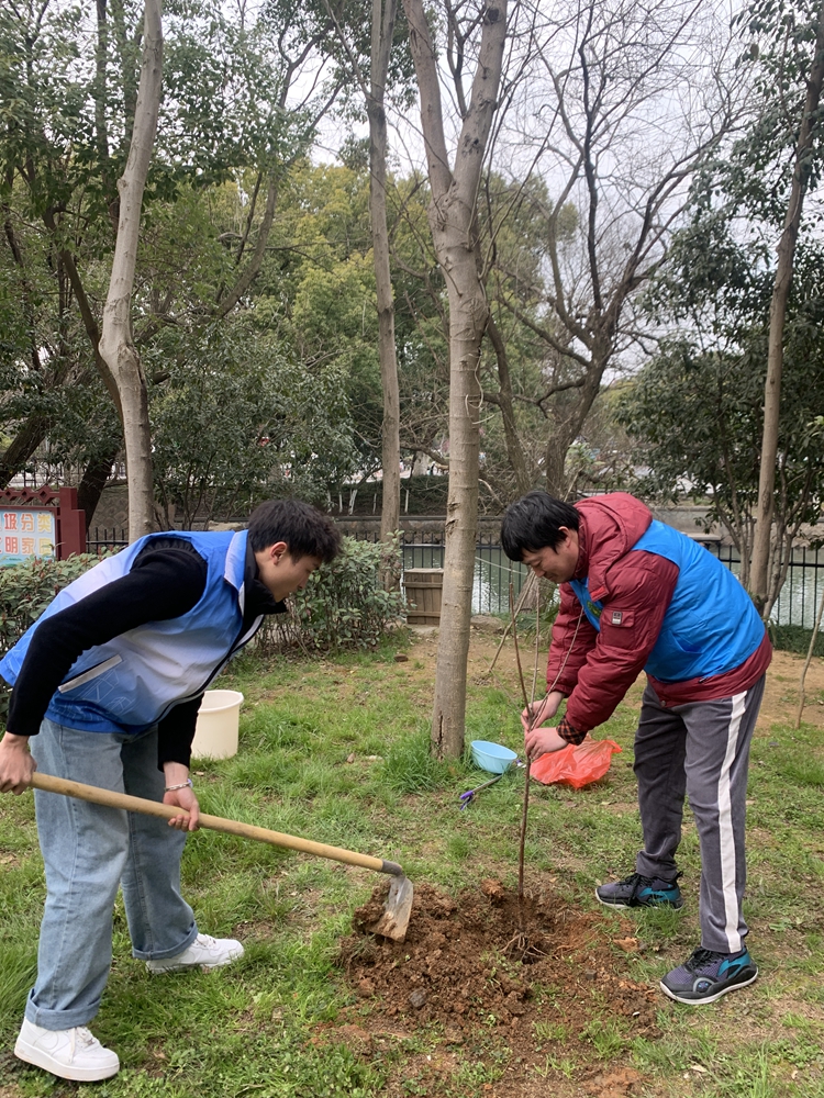 建筑工程学院学生带着铁锹、水桶、树苗来到党建联建单位华丰社区,和社区工作人员一起进行了一场义务植树活动。植树过程中,建工学子与社区工作人员相互合作,分工协作,认真挖土、放苗、扶苗、埋土、浇水,气氛热烈。一颗颗树苗在春风里得以新生,昂扬生长。活动结束后,同学们纷纷表示此次活动不仅增强了自身的环保意识,也为湖州文明典范城市建立贡献了自己的力量。