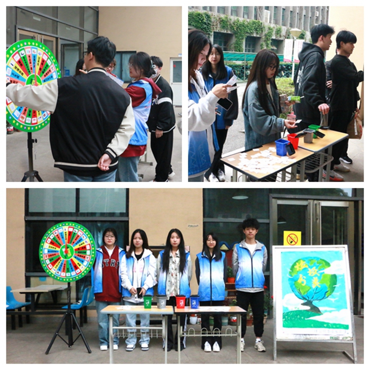 本次活动在十号寝室楼下开展,采取互动体验式和寓教于乐的形式,同学们热情高涨、踊跃参加。比如“轮盘大作战”项目,同学们自由组队,每位队员转一次垃圾分类大转盘,说出停止时指针所指的垃圾属于什么垃圾,三轮结束后,准确率最高的小组获胜;结合时下热门“盲盒”形式,让同学们抽取“盲盒”中的垃圾卡片,并将卡片放到对应的垃圾分类栏中,解锁花式宣传新姿势,感知垃圾分类“新风尚”。