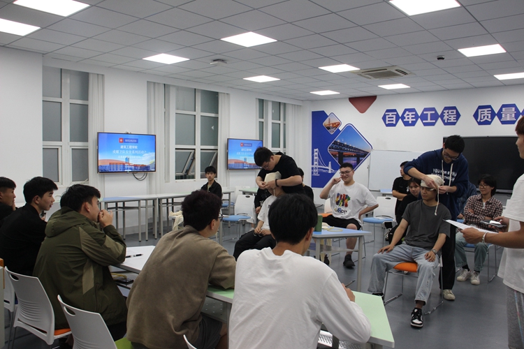 在培训中,建技2201班的肖强宏同学主讲止血包扎和骨折固定课程,造价2201班裘锭邦负责现场示范,两人详细讲解了各类止血包扎方法及注意要点,以及骨折固定的操作演练。8名退役士兵学生分组带领同学,按照不同的情况对伤员进行相应的救治练习,对不熟悉操作过程的同学进行一对一讲解。经过一周练习,培训班对参与学员进行一一考核,并给考核优秀的同学颁发了奖状。