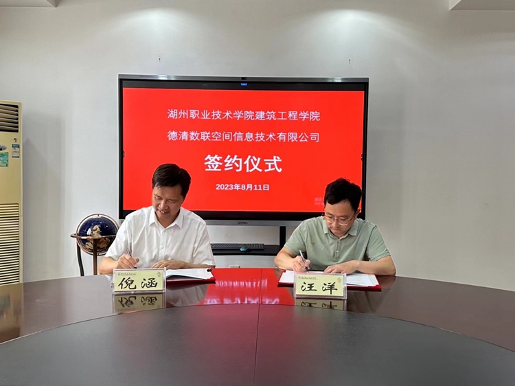 8月11日上午,建筑工程学院与德清数联空间信息技术有限公司校企合作签约仪式在学校致远楼举行。学校党委委员、外事办主任张能胜、德清地理信息小镇科技工作者学会理事长\德清数联公司总经理倪涵,湖州莫干山高新区地理信息产业发展中心副主任牛奔及其团队、建筑工程学院相关负责人参加本次活动。