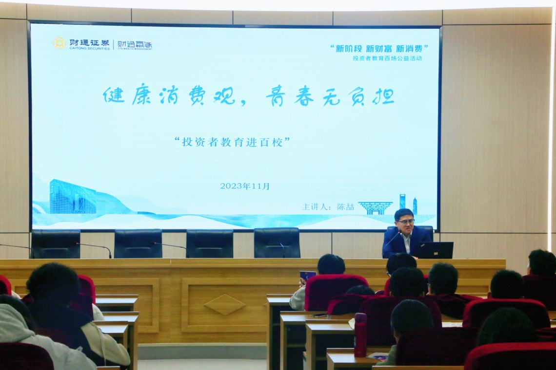 本次活动邀请了财通证券到校作“健康消费观,青春无负担”主题宣讲。业务骨干陈喆以常见的投资金融类风险为切入点,为同学们讲解了常见的承诺短期高收益高回报的代客理财风险、存在恶意营销行为的荐股类欺诈行为,引导同学们树立正确的价值观、消费观,远离从众消费心理、求异消费心理、攀比消费心理、超前消费心理。同时重点分析了校园贷诈骗、奖学金诈骗、伪装熟人客服人员诈骗、冒充公检法诈骗、杀猪盘诈骗等多种校园电信网络诈骗的现状特点及常见套路,传授同学们在遇到此类诈骗时识别骗局的技巧,提升自身反诈防诈能力。最后,陈喆提醒同学们在日常学习生活中,不轻信来历不明的电话和信息,不透露自己及家人的身份信息、存款、银行卡等情况,绝不向未核实的陌生人汇款、转账。