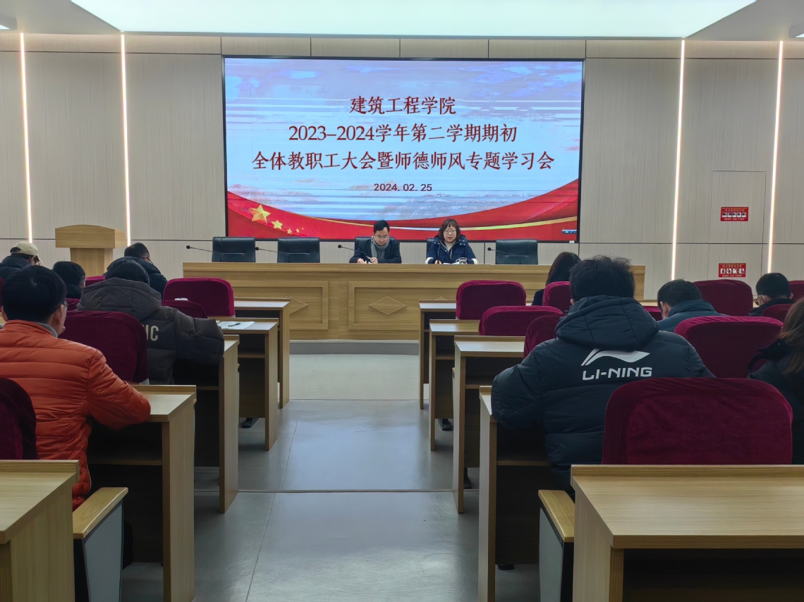 为加强学院师德师风建设,引导全体教师切实学习践行新时代师德规范,新学期伊始,建筑工程学院在14222报告厅召开春季开学师德师风专题学习会。学院党总支负责人主持会议,全体教职工参加了会议。