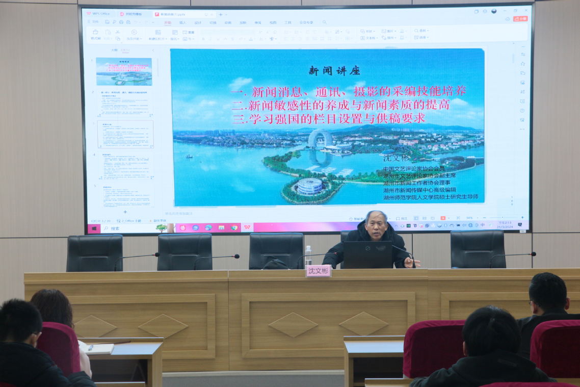 为深入学习习近平文化思想,3月21日下午,建筑工程学院在14222报告厅举办学院宣传思想文化工作专题培训班。培训班开班第一讲邀请湖州市新闻传媒中心高级编辑沈文彬作了题为“新闻素质提升与采编技巧”的专题讲座。学院党总支相关负责人、全体辅导员、教师骨干和学生干部代表等50余人参加。