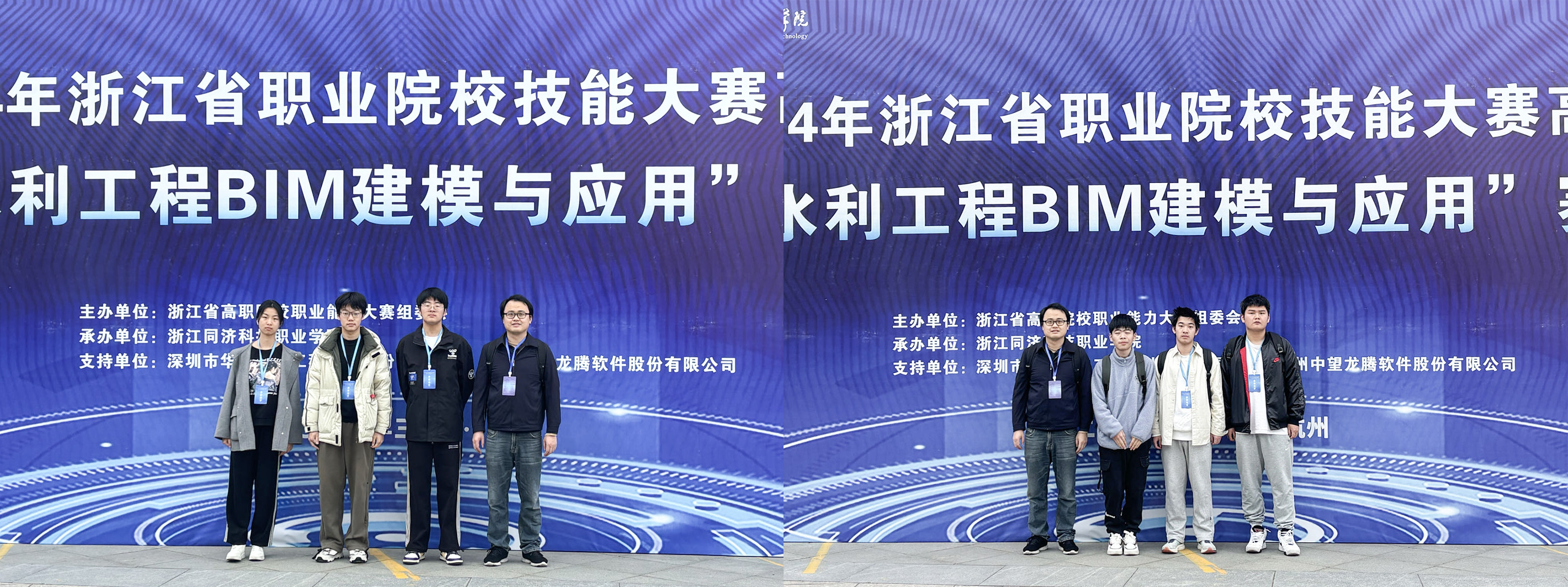 2024年浙江省职业院校技能大赛“水利工程BIM建模与应用”赛项近日在浙江同济科技职业学院顺利举行,共吸引来自全省的33支队伍参赛。经过紧张激烈的比赛,我校建筑工程学院学生戚圣伟、姜晨浩、邢露馨组成的湖职一队与林航、沈苏晨、韩新阳组成的湖职二队均获得团体三等奖。