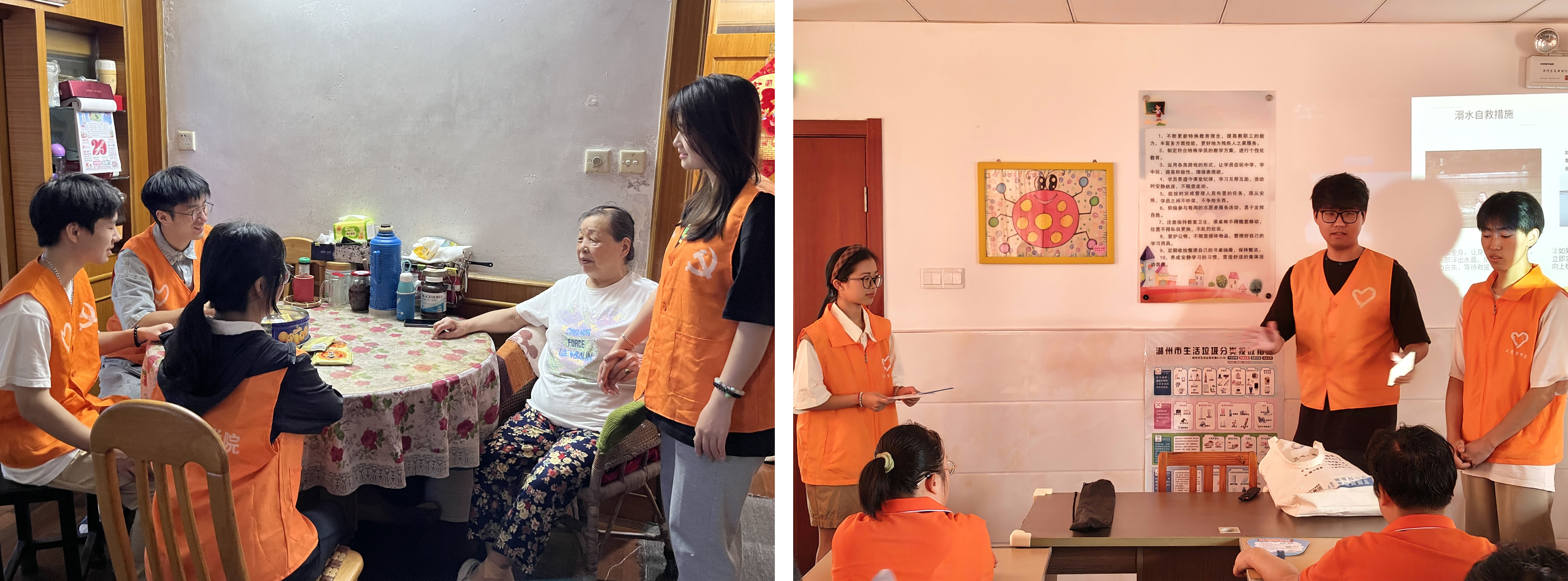 防溺水教育:增强安全意识,提升自救互救能力。为帮助阳光之家的学员们增强安全意识,提升防溺水的自救互救能力,学院志愿者用心准备并展示讲解了防溺水的安全教育课程。从溺水的概念、原因到如果不幸溺水该如何展开自救互救,志愿者们结合实际案例向大家科普了溺水情况下的各种应对技巧和自救互救要点。学员们认真听讲学习,对防范溺水、自救互救的相关常识有了更好地理解和认识。