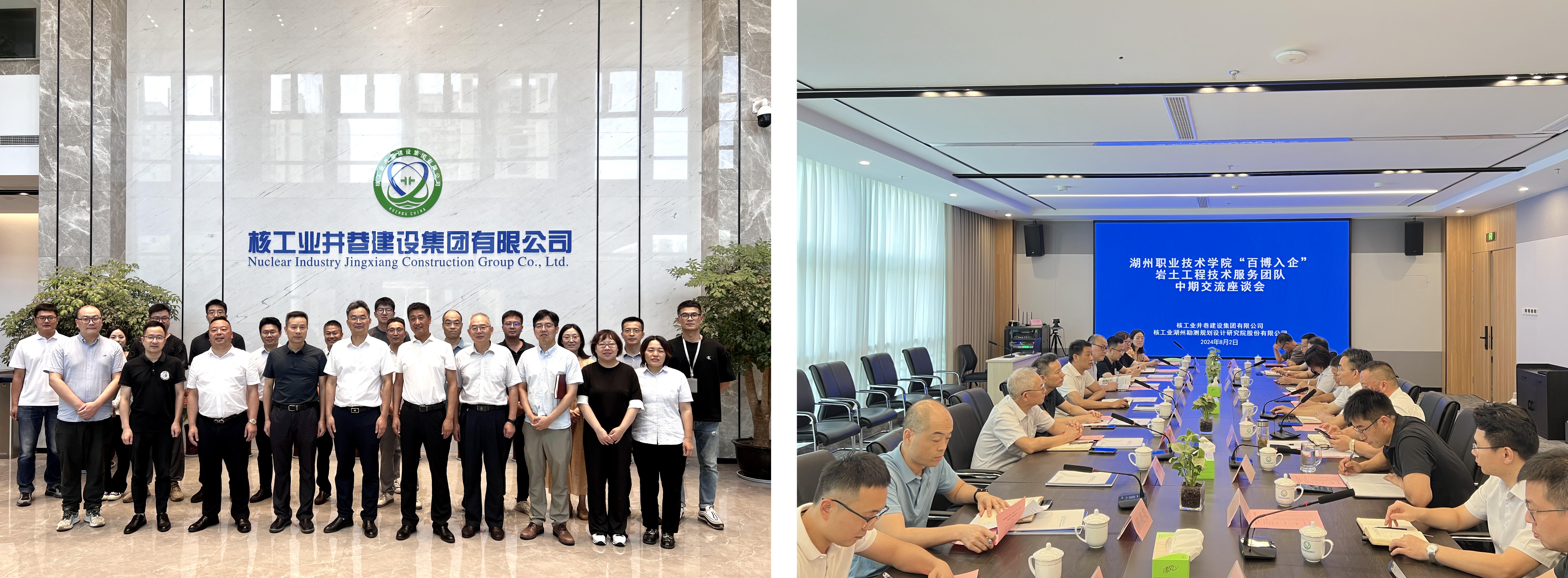 核工业建设井巷建设集团是浙江省自然资源集团有限公司全资子公司,是一家集工程施工、勘察测绘、生态环境治理等业务为一体的综合性国有企业,建有省级重点院士工作站、博士后工作站、企业研究院、企业技术中心等科创平台,与国内多所重点院校以及湖州职业技术学院建立了“产学研”合作基地,与学校建筑工程学院长期保持紧密合作关系。学校一行实地参观了企业实验室和省级重点院士工作站,并与企业代表开展了座谈交流。