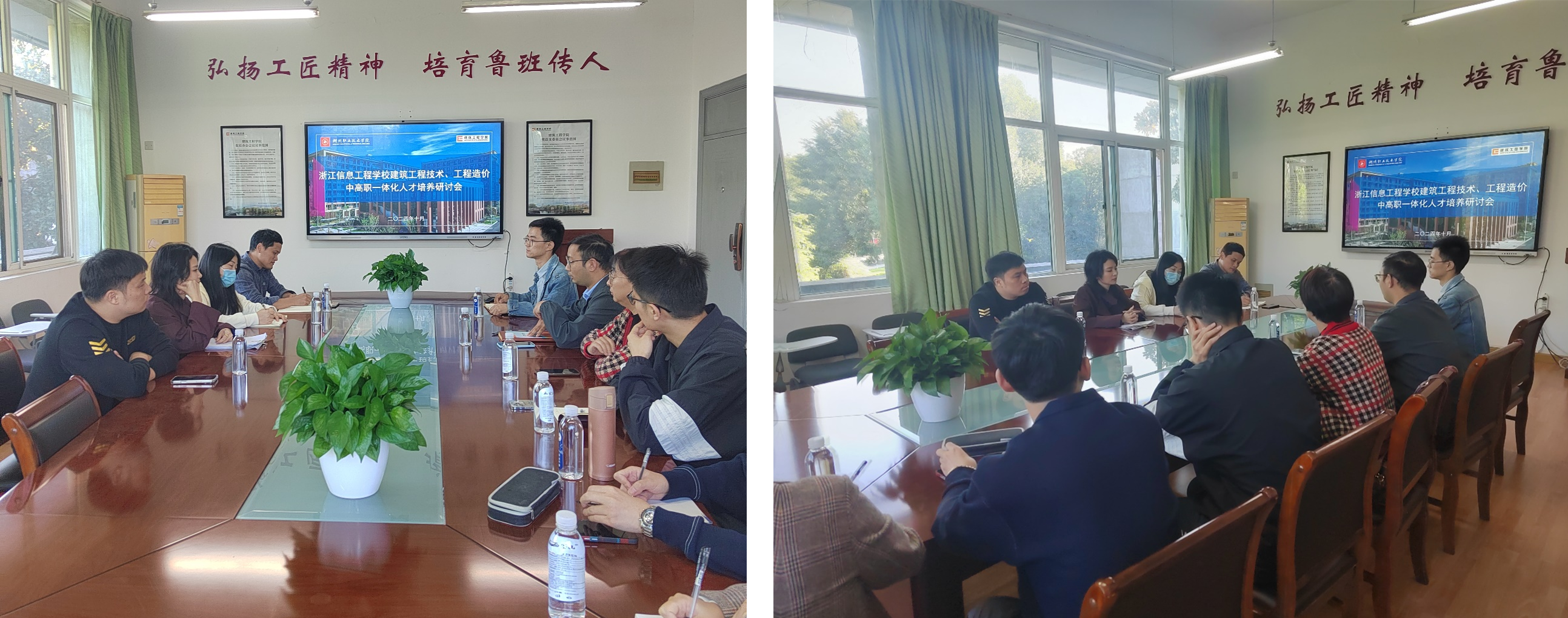 10月23日下午,建筑工程学院与浙江信息工程学校教师团队进行交流,双方围绕建筑工程技术和工程造价专业的中高职一体化人才培养展开了深入细致的研讨。建筑工程学院教学负责人、中高职一体化建设项目相关教研室主任和教师代表参加调研座谈。