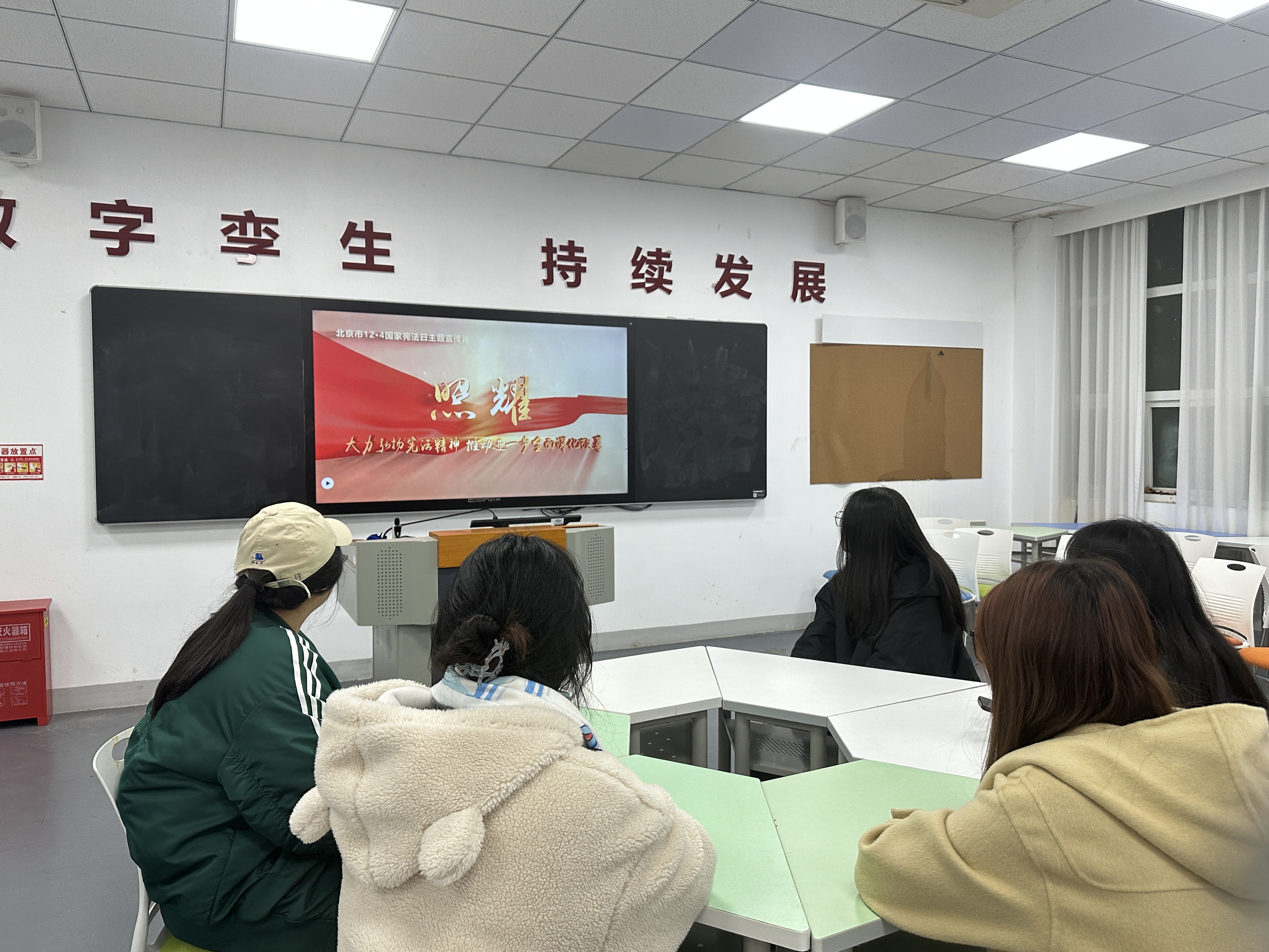 在学院团辅室,辅导员向同学们介绍国家宪法日是以纪念国家现行宪法为主题的法定纪念日,目的在于纪念宪法的诞生,弘扬宪法精神,树立宪法权威,培养社会公众崇尚宪法、服从宪法和遵守宪法的意识。宪法是一个国家的根本法,是治国安邦的总章程,是党和人民意志的集中体现,尊宪守法是每个公民的责任和义务。同学们集体观看了“12·4”国家宪法日主题宣传片《照耀》,学生代表发言表达了对宪法的敬畏之情和尊宪守法的决心。他们表示,将在今后的学习和生活中,积极学习宪法知识,提高自身法律素养,做宪法的忠实崇尚者、自觉遵守者和坚定捍卫者。。