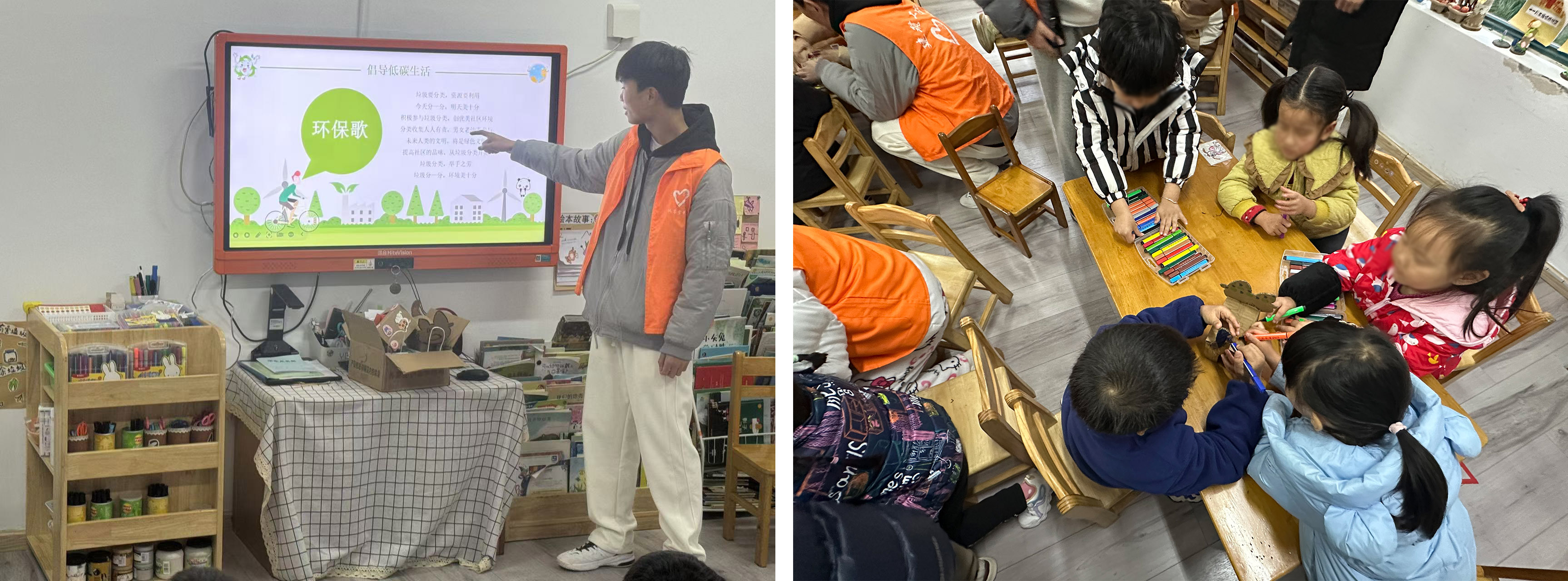 12 月 12 日下午, 建筑工程学院的师生们走进湖州市童星幼儿园红丰园区开展“大手拉小手、童心绿色行” 绿色低碳实践活动。此次活动,通过丰富多彩的低碳环保知识宣传和游戏互动,帮助孩子们树立环保意识,共同建设美丽的地球家园。