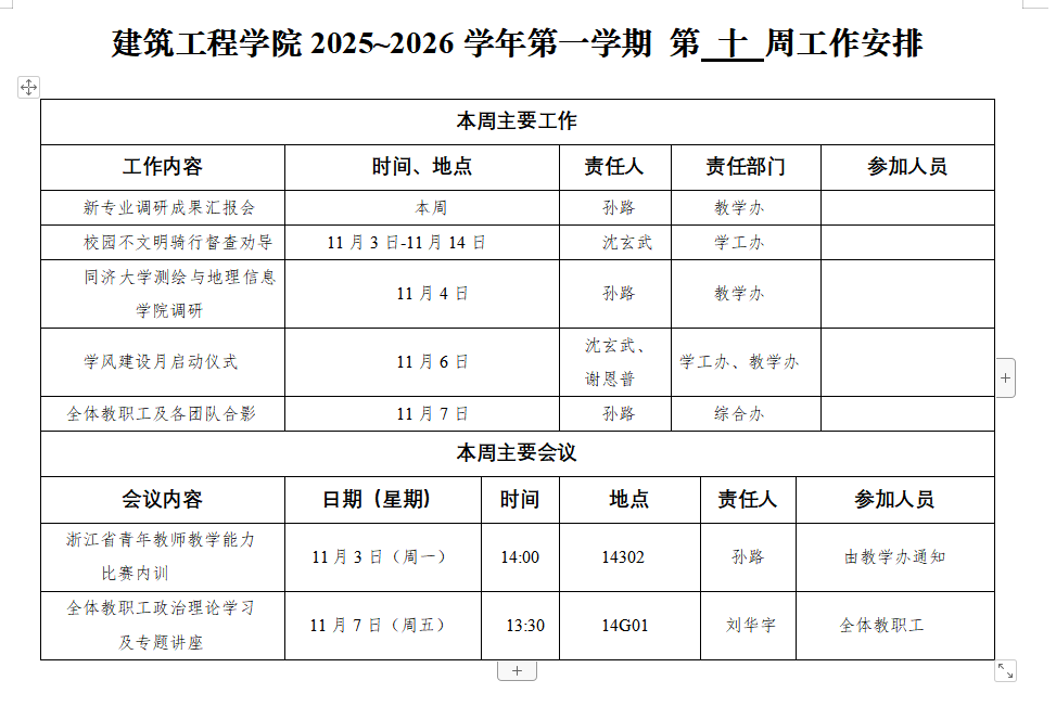 建筑工程学院 2025~2026 学年第一学期 第十周工作安排