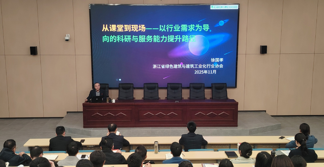 为精准对接行业发展趋势、提升教职工科研创新与社会服务能力,11月7日下午,建筑工程学院在14G01报告厅举办专题讲座,邀请浙江省绿色建筑与建筑工业化行业协会建材分会会长、正高级工程师徐国孝,以《从课堂到现场—以行业需求为导向的科研与服务能力提升路径》为题,分享前沿实践经验。学院党政班子及全体教职工参加。